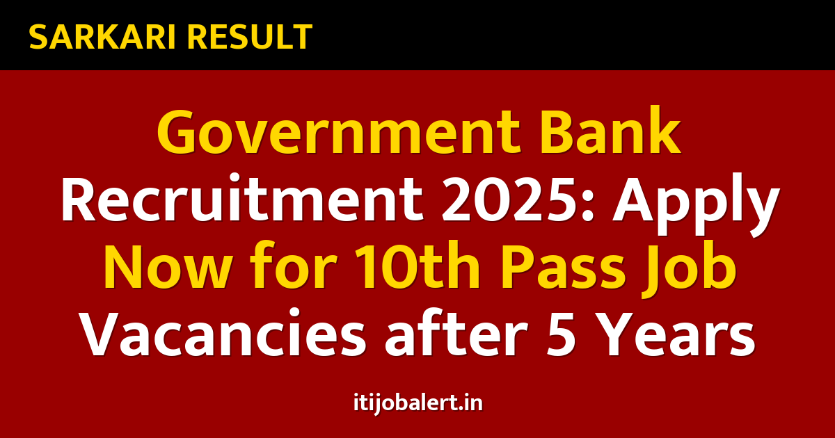 Government Bank Recruitment 2025: Apply Now for 10th Pass Job Vacancies after 5 Years