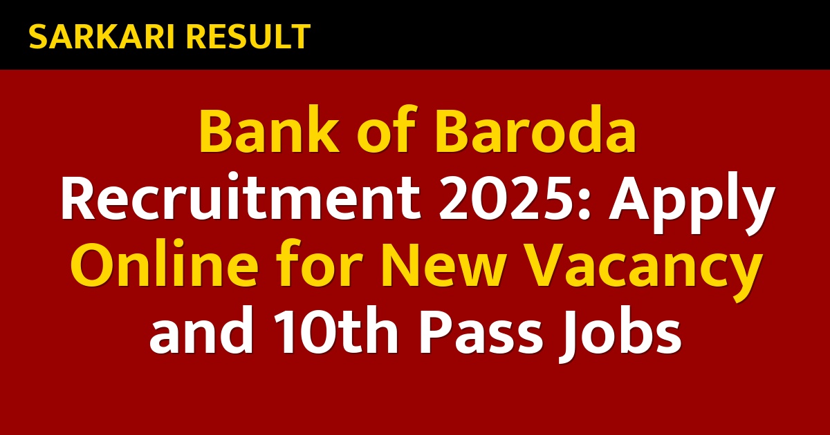 Bank of Baroda Recruitment 2025: Apply Online for New Vacancy and 10th Pass Jobs