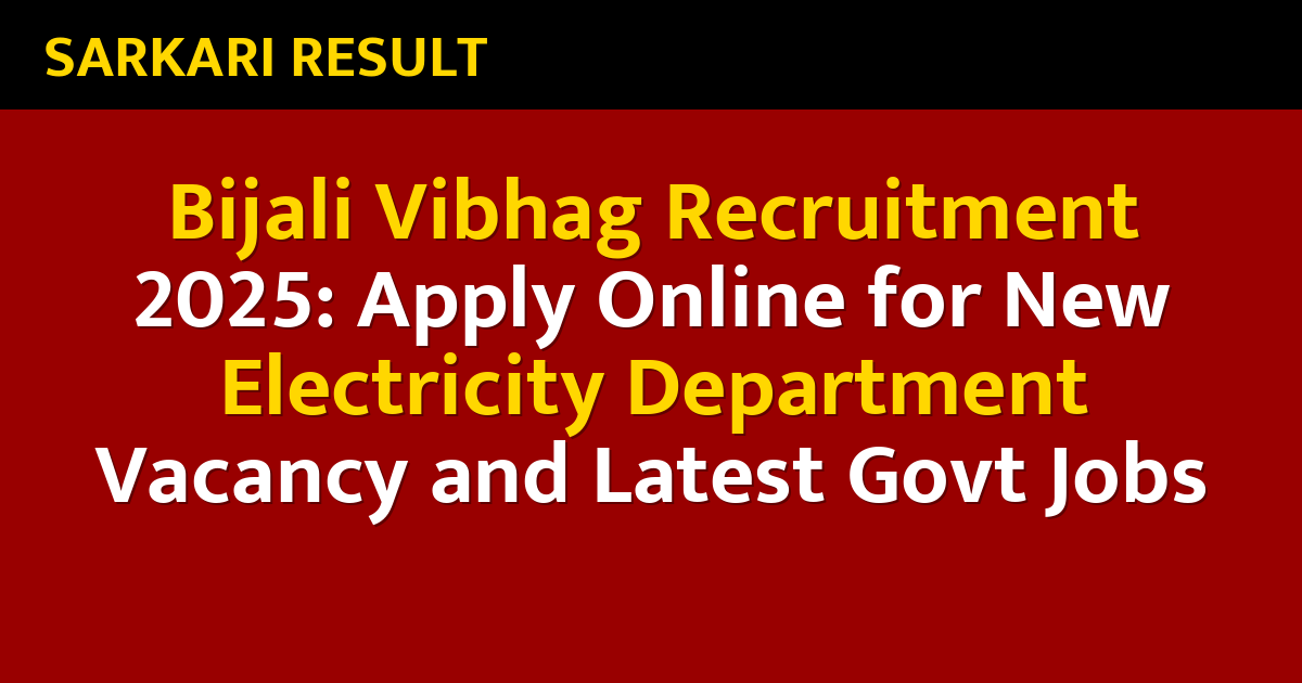 Bijali Vibhag Recruitment 2025: Apply Online for New Electricity Department Vacancy and Latest Govt Jobs