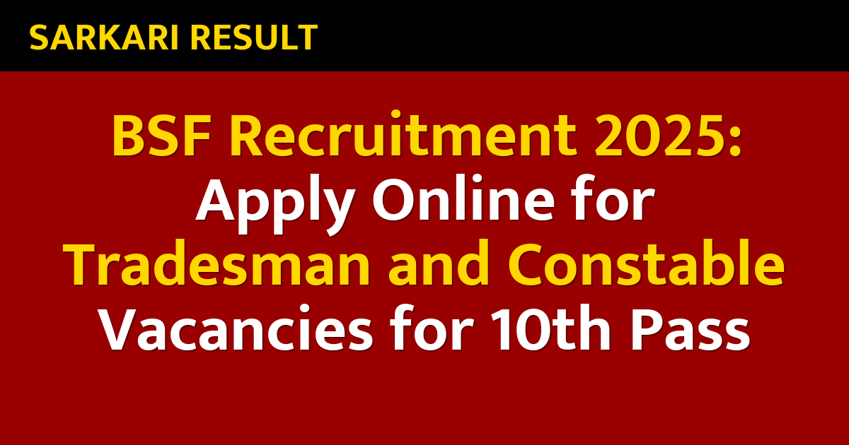 BSF Head Constable Recruitment 2025: Apply for 10,121 Posts