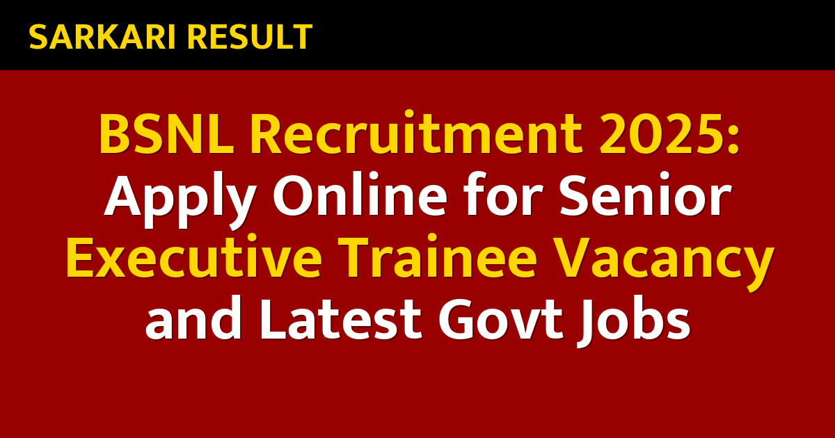 BSNL Recruitment 2025: Apply Online for Senior Executive Trainee Vacancy and Latest Govt Jobs