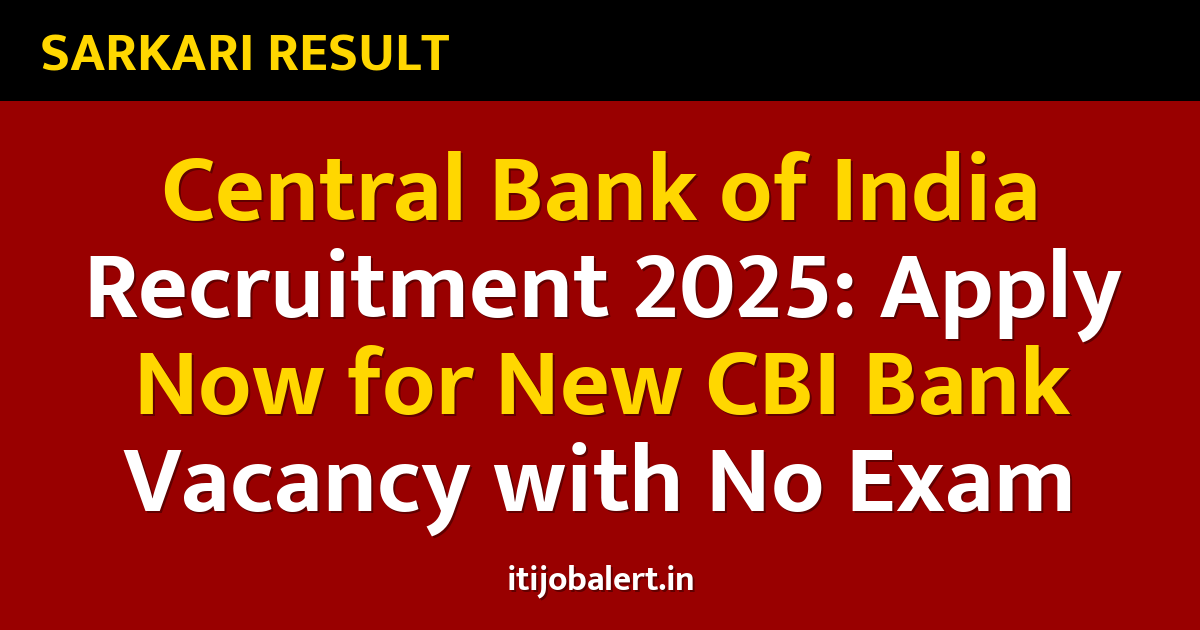 Central Bank of India Recruitment 2025: Apply Now for New CBI Bank Vacancy with No Exam
