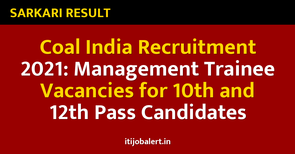 Coal India Recruitment 2021: Management Trainee Vacancies for 10th and 12th Pass Candidates
