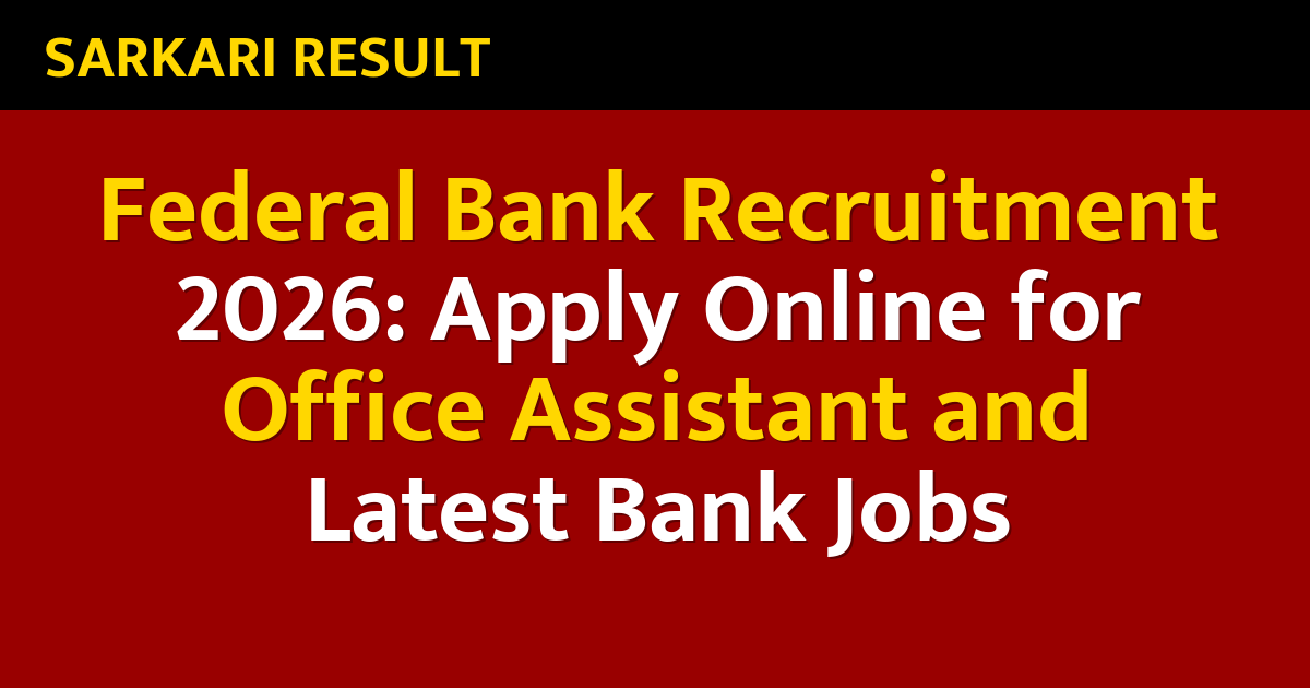 Federal Bank Office Assistant Recruitment: 10th Pass Jobs with No Experience