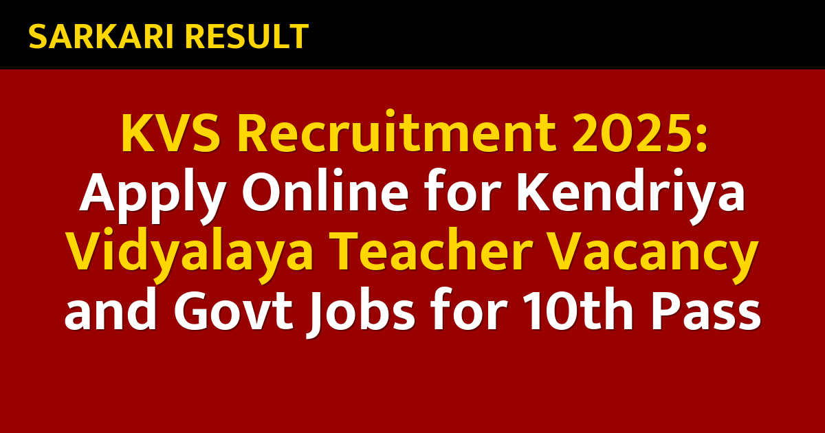 KVS Recruitment 2025: Apply Online for Kendriya Vidyalaya Teacher Vacancy and Govt Jobs for 10th Pass
