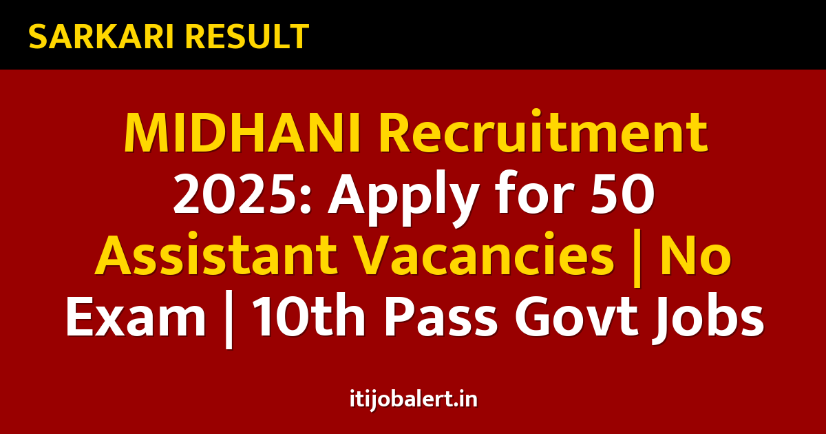 This MIDHANI recruitment 2025 offers a golden opportunity for eligible candidates seeking Assistant posts in a government enterprise. With no exam and a direct walk-in interview process, aspiring candidates should prepare their documents and attend the interviews within the specified dates. For further details and the exact interview schedule, always refer to the official notification from Mishra Dhatu Nigam.