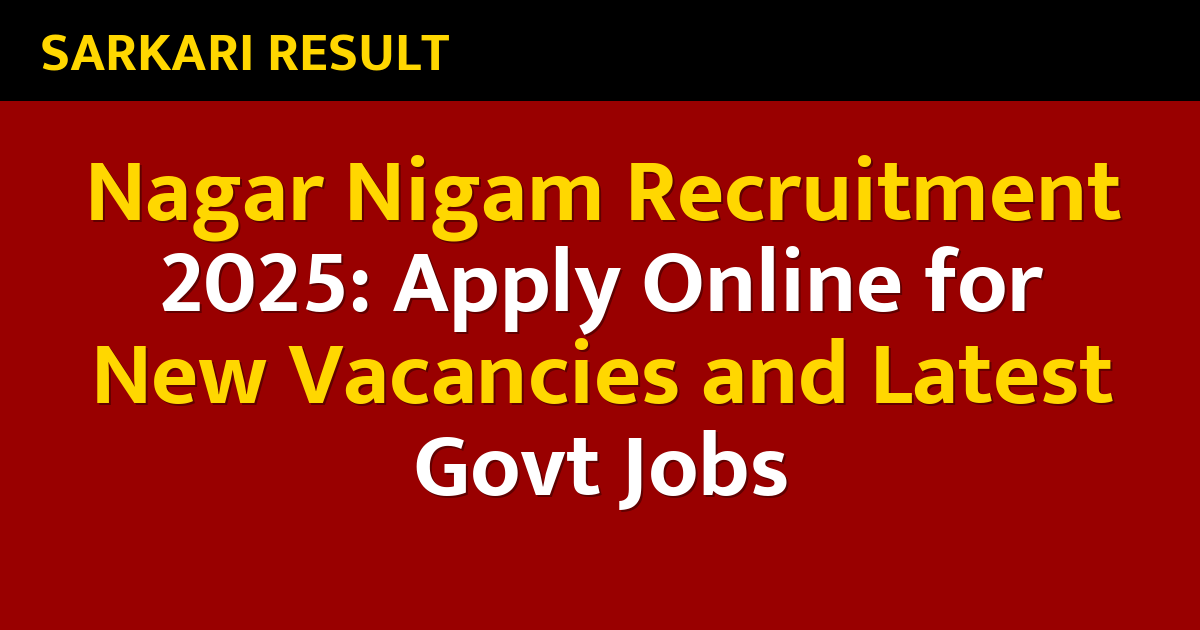 Nagar Nigam Recruitment 2025: Direct Vacancy for 8th Pass Candidates