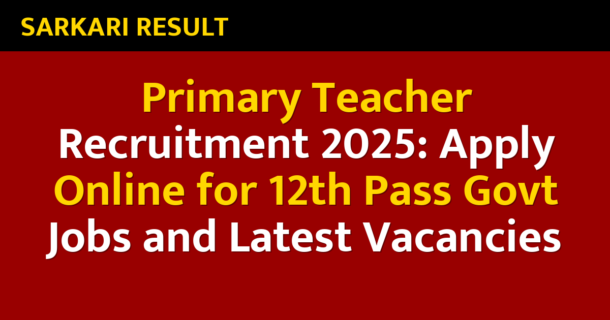 Primary Teacher Recruitment 2025: Apply Online for 12th Pass Govt Jobs and Latest Vacancies
