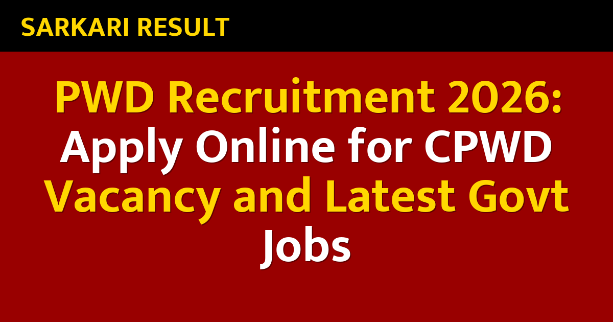 PWD Recruitment 2026: Apply Online for CPWD Vacancy and Latest Govt Jobs