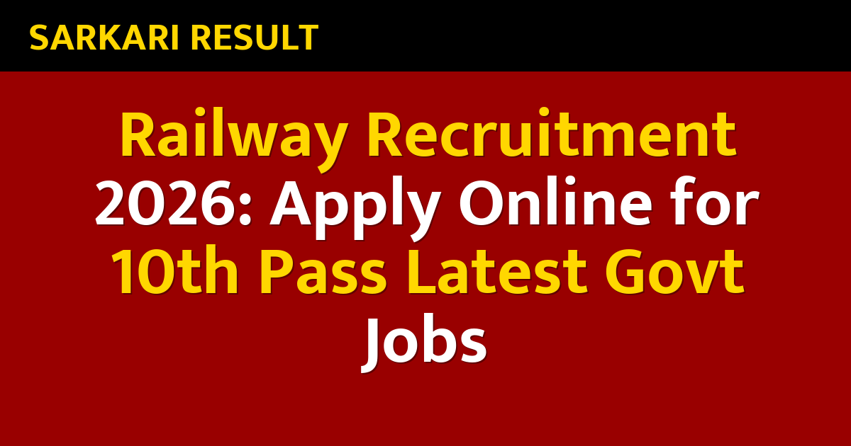 Railway Recruitment 2026: Apply Online for 10th Pass Latest Govt Jobs