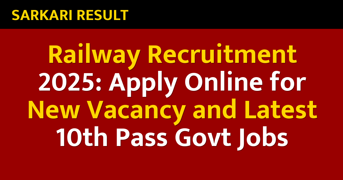Railway Recruitment 2025: Apply Online for New Vacancy and Latest 10th Pass Govt Jobs