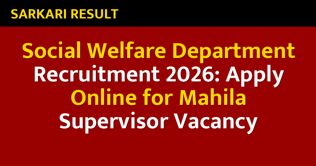 The Social Welfare Department has released a notification for a new government recruitment, making it a golden opportunity for candidates looking for a stable career. This hiring process is for government jobs, and individuals from across India, including all states, districts, and even villages, are eligible to apply. Both male and female candidates are encouraged to submit their applications.