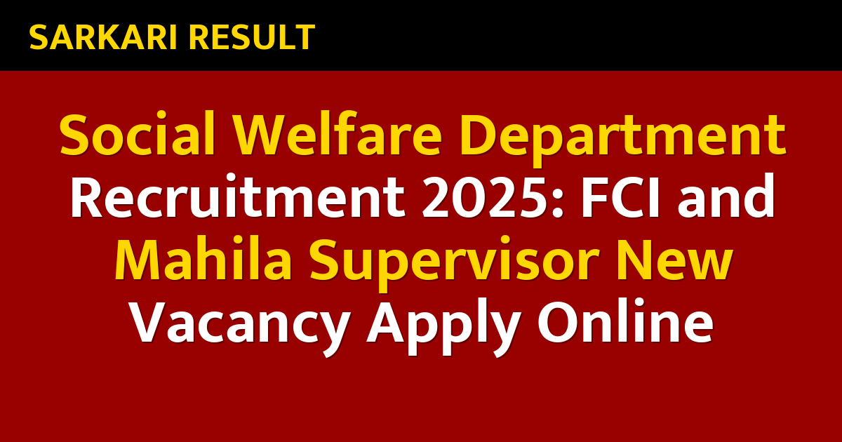 Social Welfare Department Recruitment 2025: FCI and Mahila Supervisor New Vacancy Apply Online