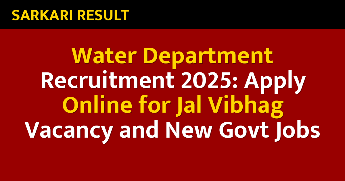 Water Department Recruitment 2025: Apply Online for Jal Vibhag Vacancy and New Govt Jobs